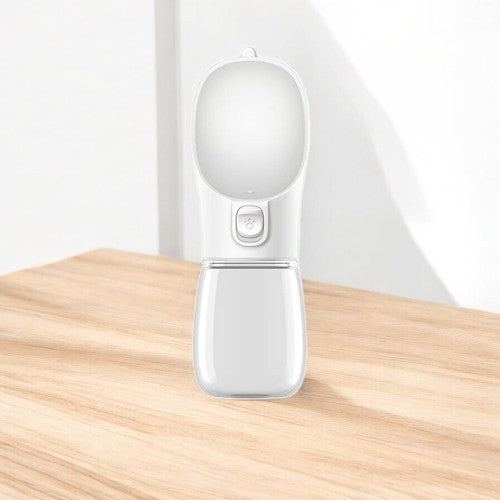 This bottle includes a built-in drinking container or cup for convenience. It is intended for serving water during walks, travel, or outdoor activities. Water flow and bottle functionality may vary by model.